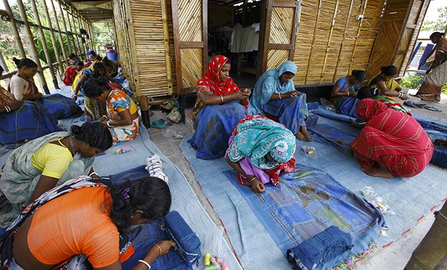 Each piece we create is a work of art, with the highest care taken in every step of dyeing, shibori and quilting. We work with Living Blue cultivated indigo and other natural dyes, and only use silk and cotton weaved by local artisans in Bangladesh.